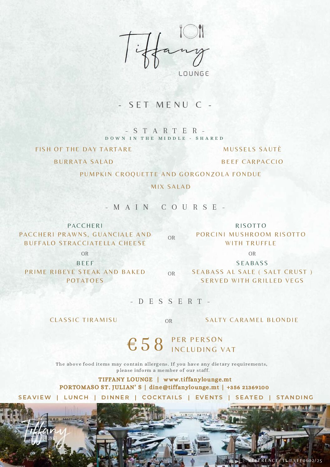 Cocktail Supplement of €10 per person should you wish to add 2 cocktails to